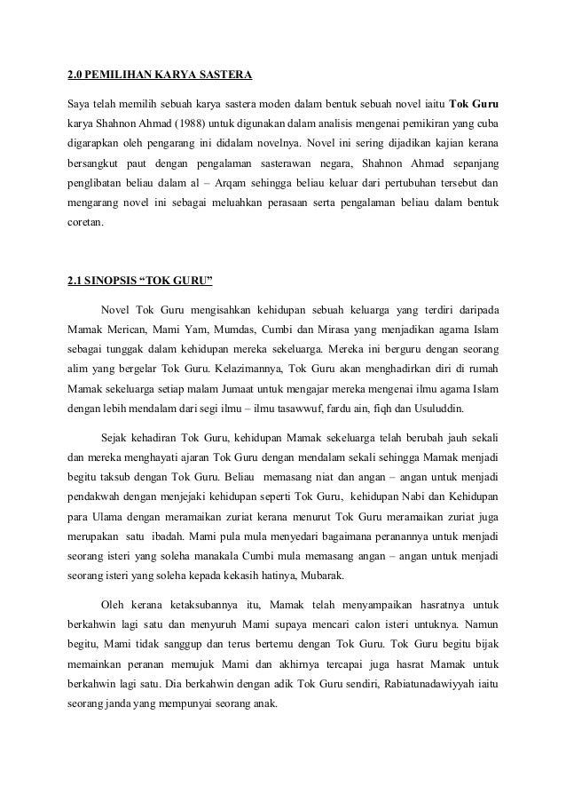 Contoh Olahan Karya Novel "tok Guru" via www.slideshare.net